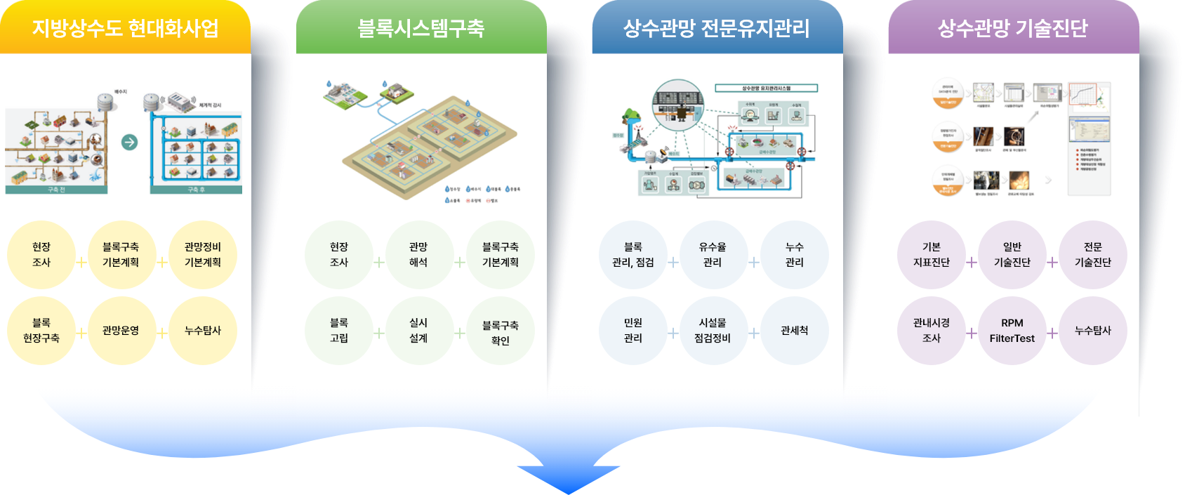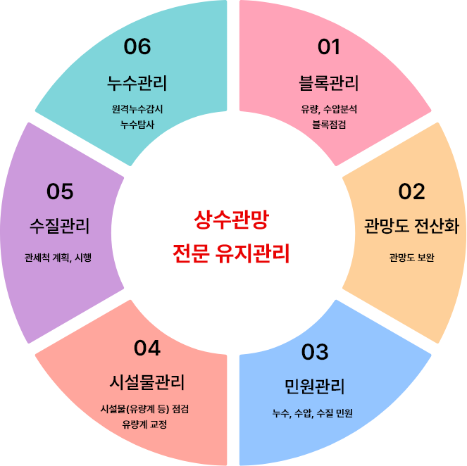 유수율 제고, 먹는 물 수질관리, 시설물 점검, 민원관리